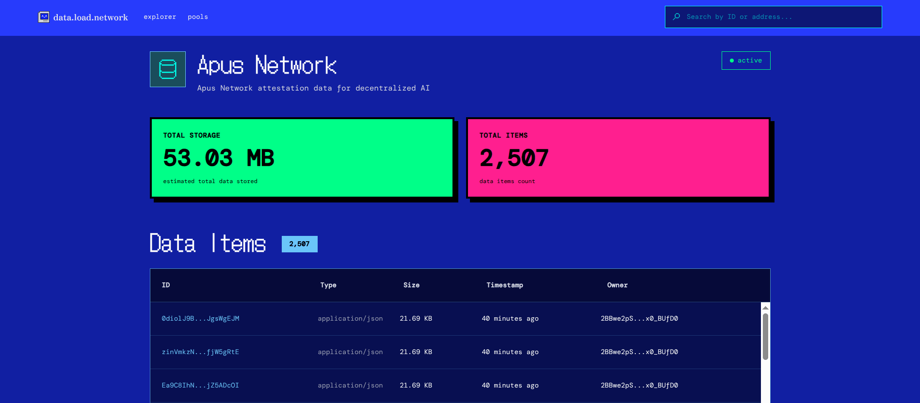 For users like Apus, who implemented Load S3 storage to store AI inference and prompt data, this provides an auditable proof of storage with a direct route through to Arweave permanence (retaining the exact same ID regardless of storage layer).