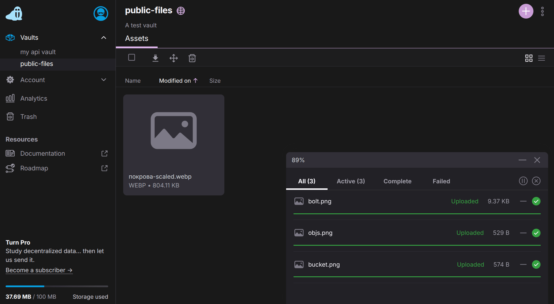 Tusky emphasizes end-to-end encryption for private vaults. All data inside encrypted vaults is encrypted client-side before upload, and Tusky doesn’t have access to decryption keys. Users control keys entirely. Public vaults are also supported for non-sensitive data.